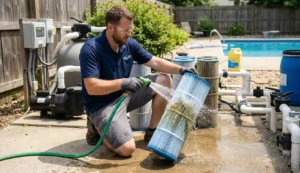 Proper skimmer and filter cleaning not only improves water clarity but also protects your pump, reduces chemical demand, and extends the life of your equipment.